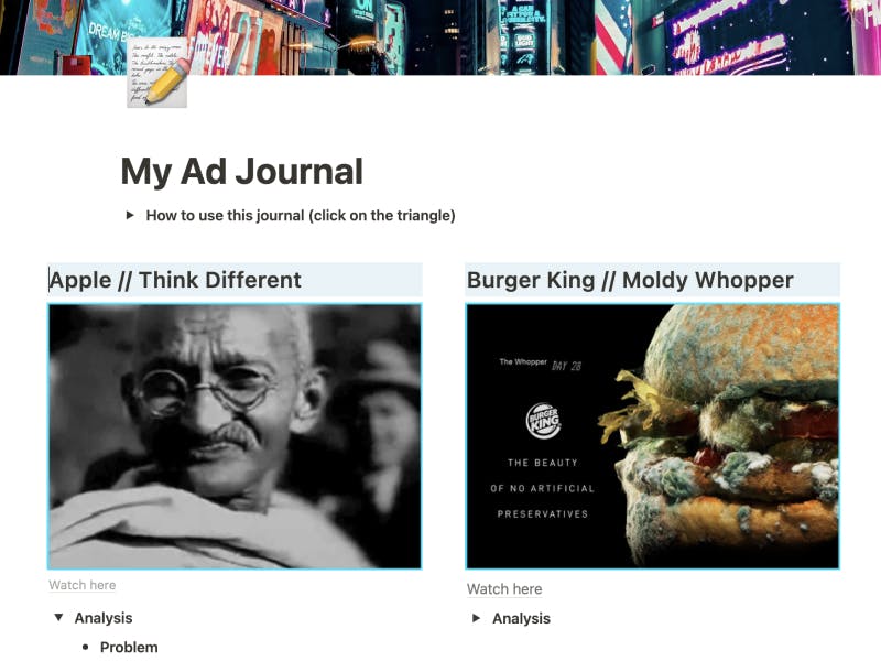 When I was starting out, I organized my favorite ads in an Ad Journal, like this: