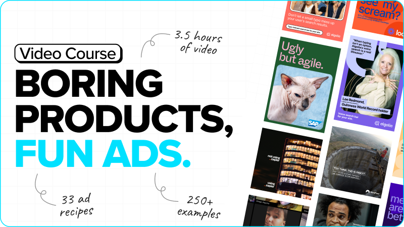 And in my course, Boring Products, Fun Ads, you’ll get: