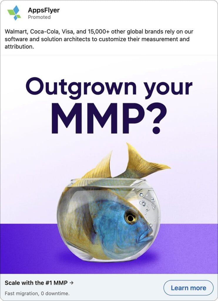 And the big man in the small box reminded me of AppsFlyer’s target audience: enterprise teams locked into software built for startups.