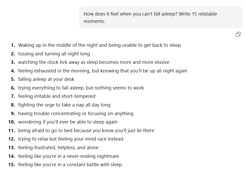 15 insights in 10 seconds. Not bad. So I picked my favorites and wrote some headlines: