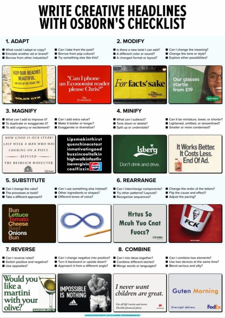 So today, I’ll show you how a classic ideation method, Osborn’s Checklist, can be used to write headlines.